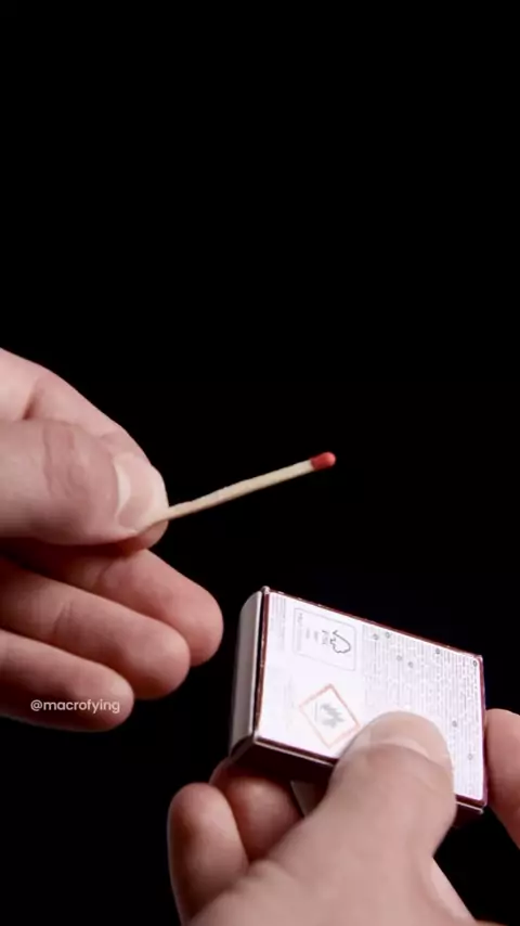 Um palito de fósforo acendendo pela superfície da caixa. seja que incrível 🔥🕯️🔬 #satisfyingvideos #asmrvideo #topz #macro #fosforo sforo