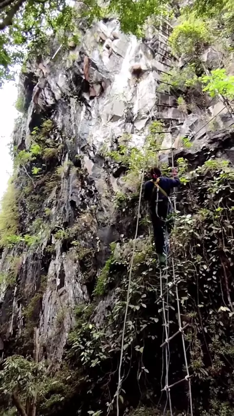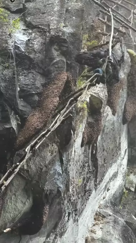 Panen madu di tebing batu,memakai alat sefty seadanya😱 #honey #usa #maduhutanjawabarat #2025internationalshortvideocompetition #fy