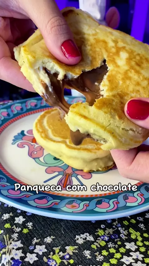 Panqueca com chocolate é MUITO bom!!! #receita #comida #receitinha #panqueca