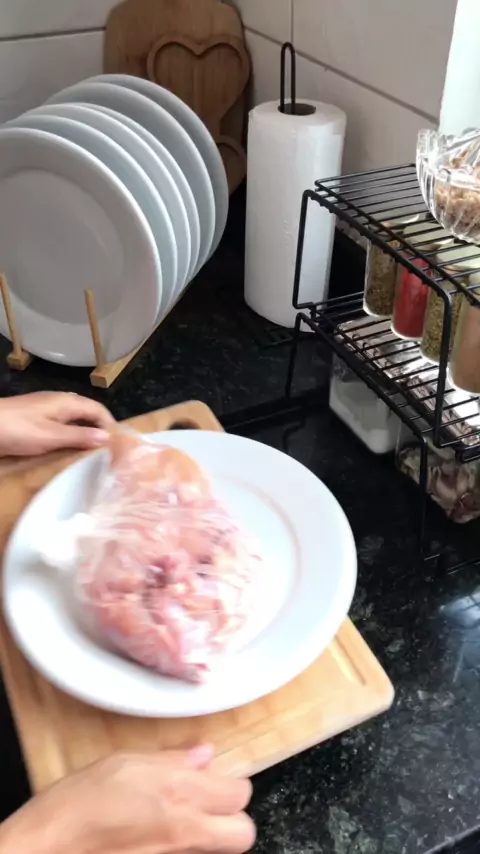 Almoço de hoje! Frango a passarinho assado no forno 😋
