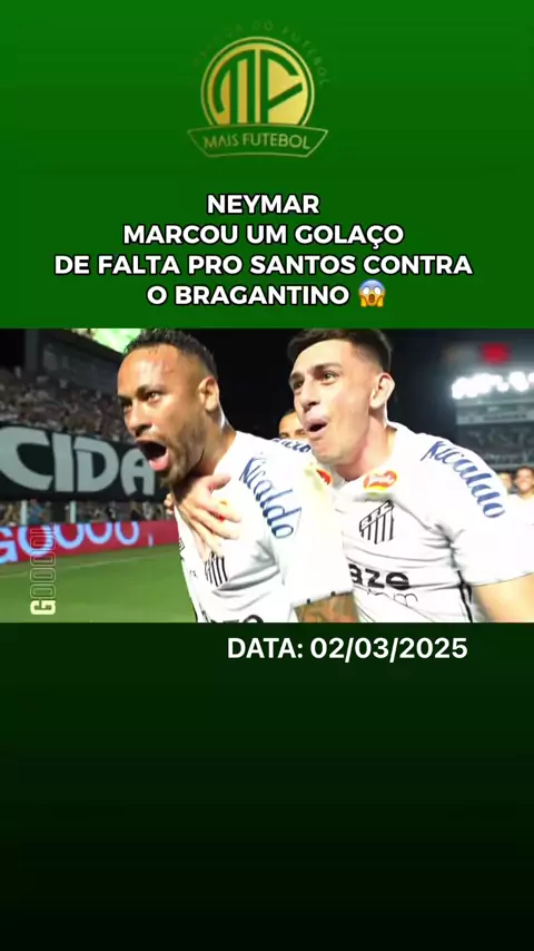 NEYMAR MARCOU UM GOLAÇO DE FALTA CONTTA O BRAGANTINO. JOGO: Santos x Bragantino. DATA: 02/03/2025. #Neymar #NeymarGolDeFalta #Santos #SantosxBragantino #esporte