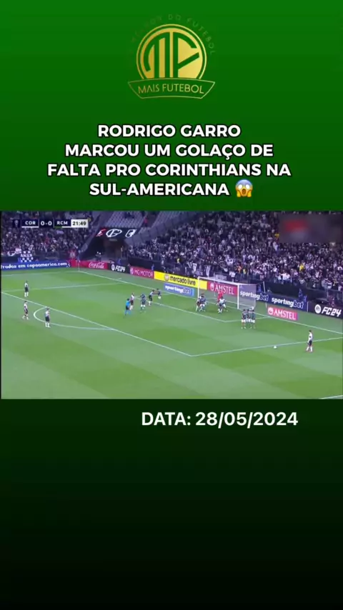 RODRIGO GARRO MARCOU UM GOLAÇO DE FALTA PRO CORINTHIANS. JOGO: Corinthians X Racing. DATA: 28/05/2024. #rodrigogarro #Corinthians #racing #CorinthiansXRacing #esporte