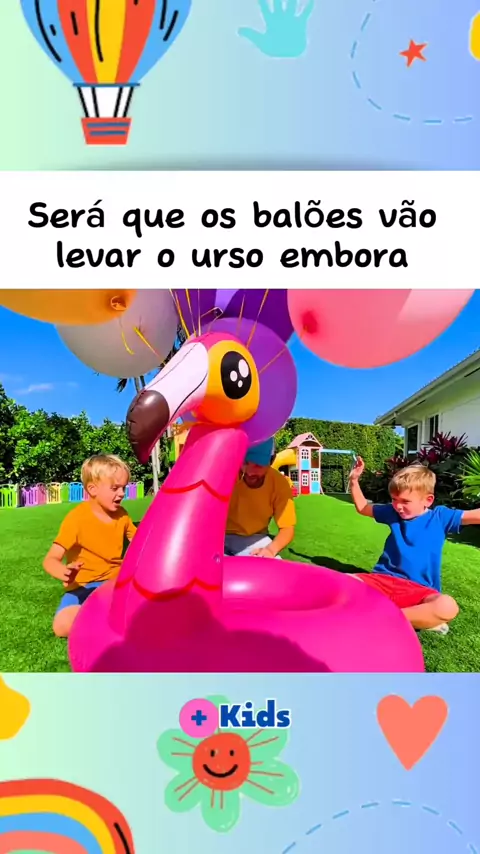 Será que os balões vão levar o urso embora #Criança #kids #baby
