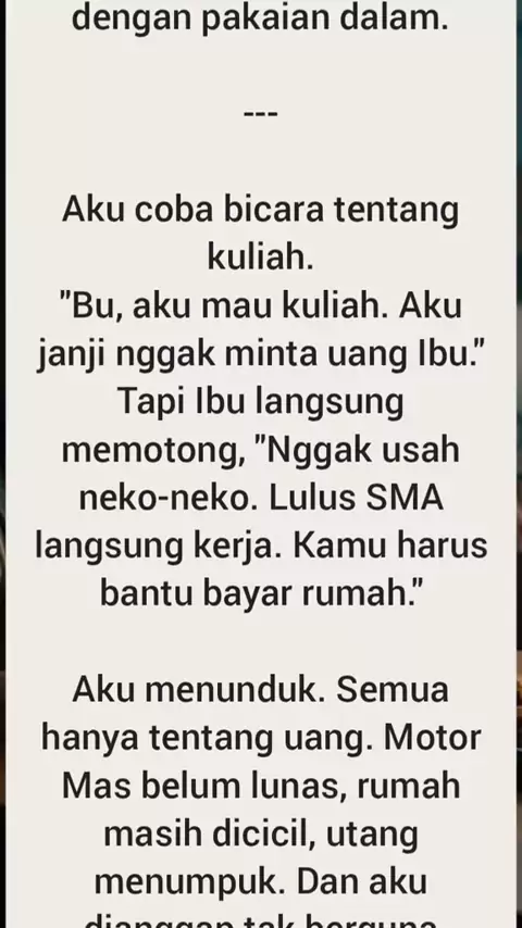 Baca part selanjutnya di aplikasi KBM App ya... Judul: Ibu yang Dibuang Penulis: Dewi Diyu #bismillah #kbmapp #DewiDiyukbm