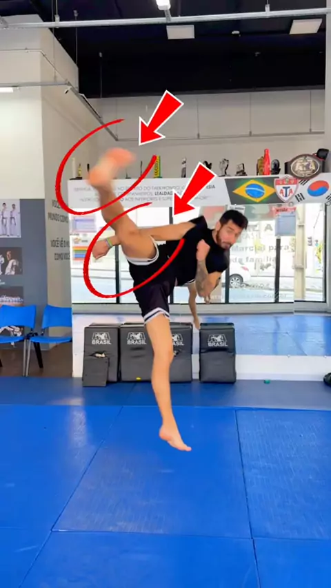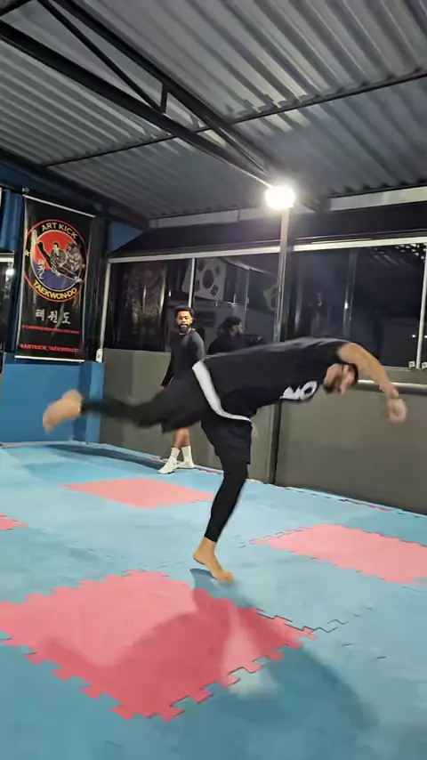 Como é o nome desse chute?? #tricking #karatekid #taekwondo #karate #trick #kick #flip #round #cork #