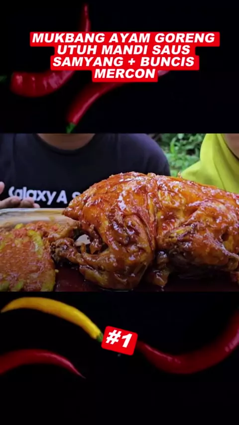 MUKBANG AYAM GORENG UTUH MANDI SAUS SAMYANG + BUNCIS MERCON #makanlokal #makanenak #makanan #kenyang