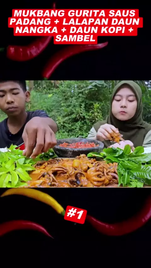 MUKBANG GURITA SAUS PADANG + LALAPAN DAUN NANGKA + DAUN KOPI + SAMBEL #makanlokal #makanenak #makanan #kenyang