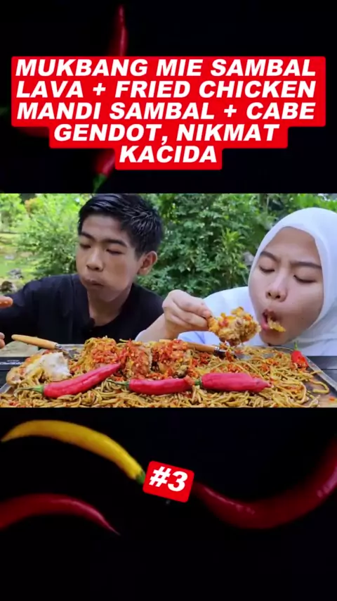 MUKBANG MIE SAMBAL LAVA + FRIED CHICKEN MANDI SAMBAL + CABE GENDOT, NIKMAT KACIDA #makanlokal #makanenak #makanan #kenyang