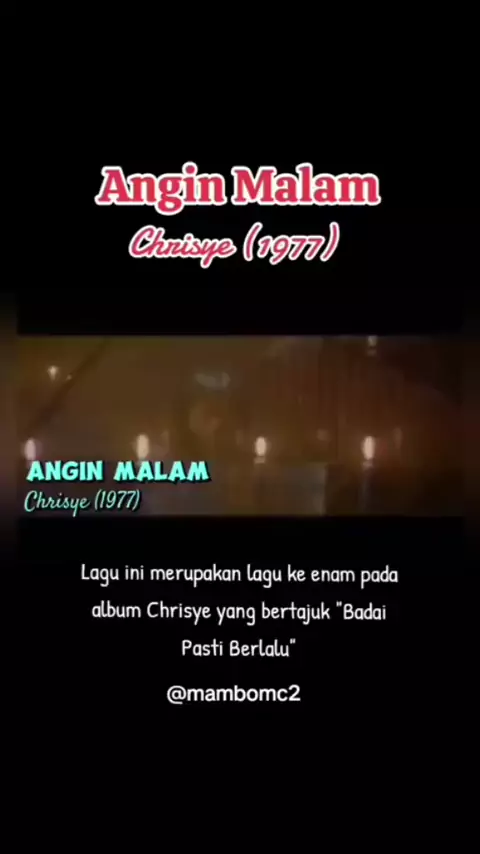 #padahariini "Angin Malam" Lagu Chrisye tahun 1977 yang merupakan lagu ke 6 pada Album Chrisye yang bertajuk "Badai Pasti Berlalu" #anginmalam #chrisye #1977 #mambomc2