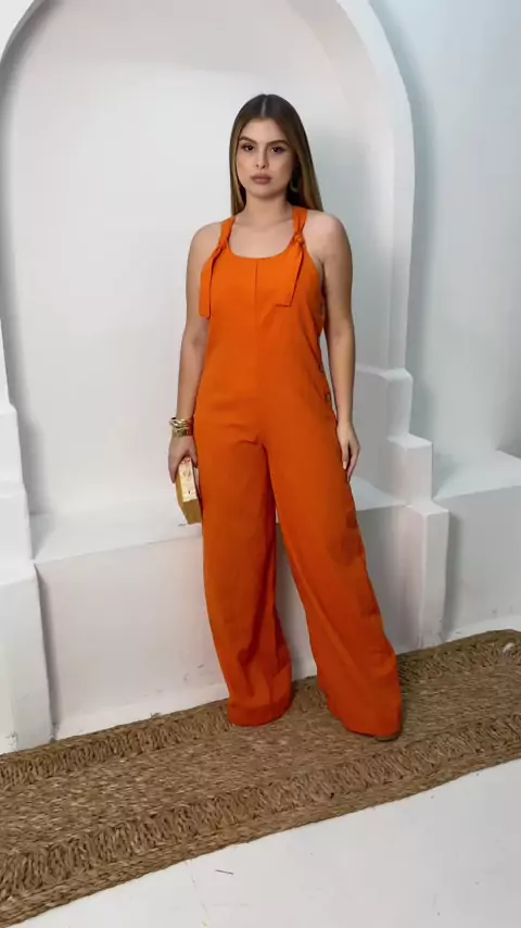 Macacão Feminino Wide Leg Pantalona Com Botões de Madeira #verao #looks #lookinspiraçao #Natal #modafeminina