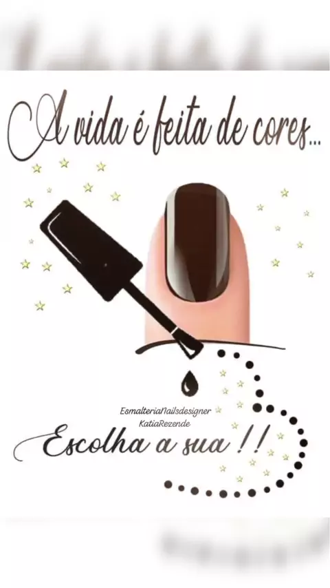 Suas unhas merecem um toque especial! Agende seu horário comigo!" "Beleza nas mãos é comigo! Unhas perfeitas esperam por você." "Cada detalhe faz a diferença. Venha transformar suas unhas!" "Cores, brilho e muito carinho! ... "Sou apaixonada por cuidar das suas unhas.🥰 #EsmaterianailsdesignerKatiaRezende