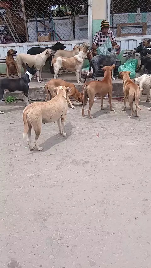 lobão alimentando os cachorros