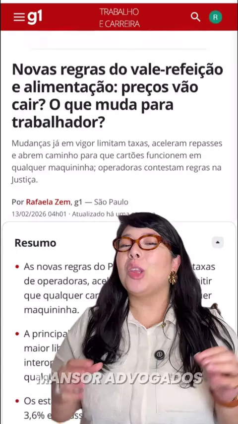 Entraram em vigor novas regras para o vale-alimentação (VA) e vale-refeição (VR) para ampliar a transparência, a concorrência e o acesso dos trabalhadores aos benefícios. Agora, as operadoras que oferecem esses benefícios não podem cobrar taxas superiores a um teto permitido, e o prazo de repasse dos valores aos estabelecimentos comerciais foi reduzido, para garantir maior eficiência no sistema. #valealimentacao #clt #trabalho #ValeRefeiçao