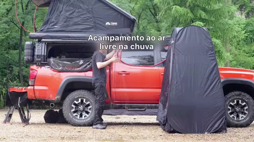 Acampar ao ar livre na chuva parece bom.