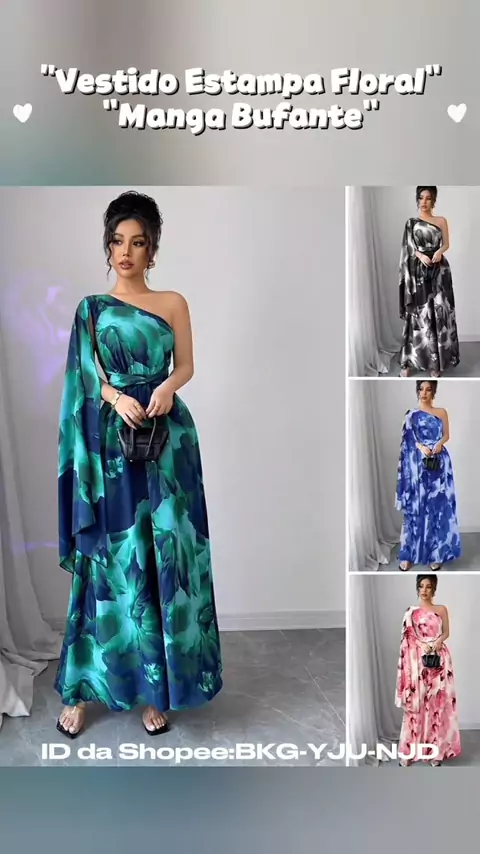 Vestido Estampa Floral Manga Bufante-Cintura Elástica ID da Shopee: BKG-YJU-NJD #MODA #modafeminina #vestido #vestidos #maisviews