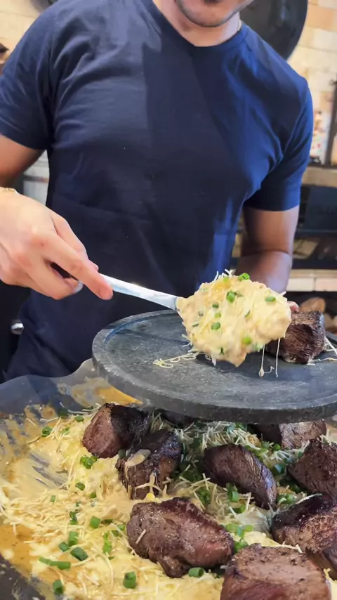 Carne de sol com arroz piamontese 🔥🥘 - Carne de sol - ⁠Manteiga - Cebola - ⁠Champignon - ⁠Vinho branco seco - ⁠Arroz branco cozido - ⁠Creme de leite - ⁠Queijo curado ralado - ⁠Cheiro verde 💥🧂Os temperos você pode adiquirir com meu cupom CARADODISCO20 com 20% de desconto. @Rasteiro’s Alimentos 💥🍽️ Os pratos de pedra você pode comprar os seus com meu cupom CARADODISCO com 5% Off. @Portal Pedra Sabão