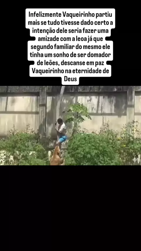 Infelizmente Vaqueirinho partiu mais se tudo tivesse dado certo a intenção dele seria fazer uma amizade com a leoa já que segundo familiar do mesmo ele tinha um sonho de ser domador de leões, descanse em paz Vaqueirinho na eternidade de Deus. #deusnocomando