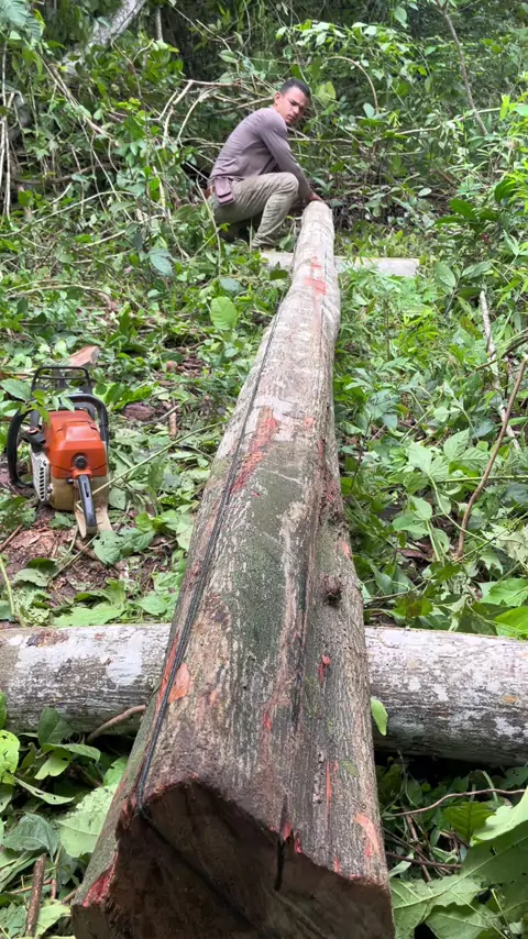 Serrando madeira na mata