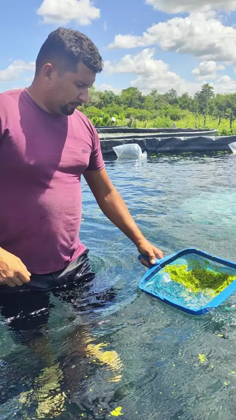Tirando as leminas pros alevinos não comerem