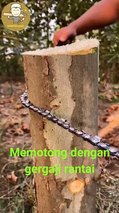 memotong dengan gergaji rantai. simpeldah #DIY #puasa #Tools #lifeskill #wood