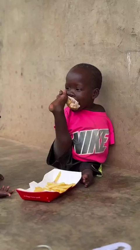 Algumas crianças comem com os pés, não por escolha, mas por necessidade.