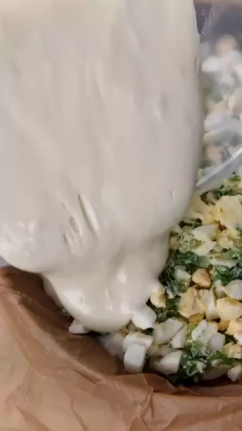Quando tenho ovos e kefir, faço esta torta rápida e deliciosa. Ingredientes para a massa: Kefir - 420 gr ovo médio - 2 unid. Óleo de girassol - 40 gr Farinha - 300 gr Sal - 0,5 colher de chá. Açúcar - 2 colheres de chá. Soda - 1 colher de chá. ingredientes para o recheio: Ovo médio - 7 unid. Cebolas verdes - 80 gr de manteiga - 50 gr de sal - 1 / 3 colher de chá. Forma de cozimento - 26 cm. asse a 180 graus por cerca de 35 minutos.