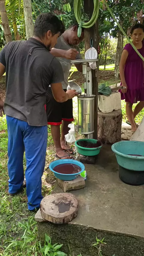 batendo açaí manualmente, no sítio #sitio
