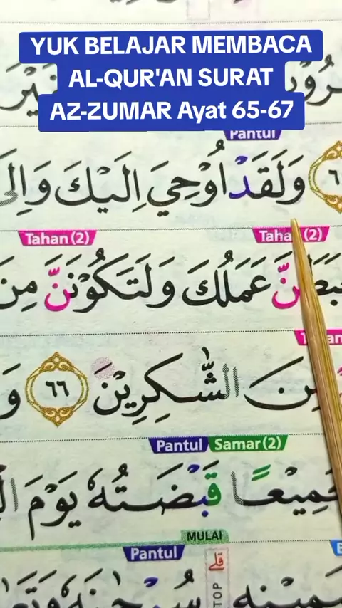 YUK BELAJAR MEMBACA AL-QUR'AN SURAT AZ-ZUMAR Ayat 65-67 ini keutamaan membaca surah Az-Zumar, Meningkatkan keimanan: Membaca surat ini dapat meningkatkan keimanan kepada Allah SWT. Pahala bagi orang sabar: Mengingatkan bahwa orang yang sabar akan mendapatkan balasan tanpa batas dari Allah, sebagaimana disebutkan dalam ayat 10. Memotivasi untuk berbuat baik: Mengingatkan manusia akan pertanggungjawaban perbuatan di akhirat, memotivasi untuk berbuat kebaikan. Pesan tentang ilmu dan ibadah: Mendo...