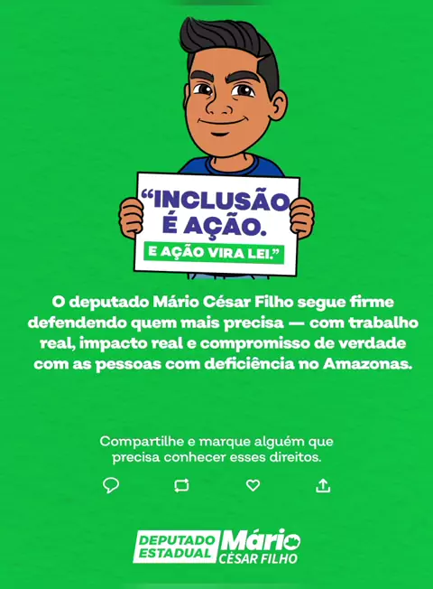 Estamos trabalhando para tornar a nossa sociedade mais inclusiva, acessível e justa para todos. ✨🤝 Levando bem-estar, segurança e acolhimento a quem mais precisa, especialmente às crianças e às pessoas com deficiência. Seguimos juntos, com a certeza de que, enquanto estivermos aqui, vamos lutar todos os dias pelo bem do nosso povo amazonense. 💙 #DeputadoEstadual #MarioCesarFilho #Inclusão #amazonas