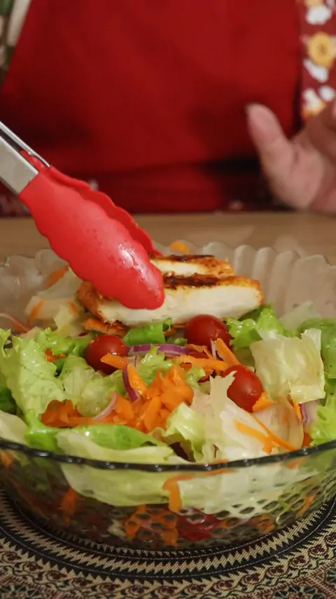A Salada Perfeita ? Existe sim 🥗 uma salada proteica e com baixas caloria, além de super gostosa! Alface crespa e Americana Tomate cereja Meia cebola roxa 1 Cenoura Utilizei 300g de peito de frango temperado com alho, sal, pimenta do reino e lemon pepper. Molho: Suco de 1/2 limão 1 colher (sopa) mostarda 1 colhe (sopa) mel Lemon pepper, Sal, Pimenta do reino, Azeite #salada #saladasaudavel