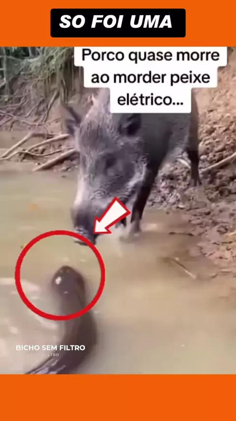 javali morde enguia, enguia da uma choque em porco #porco #javali #javaliselvagem