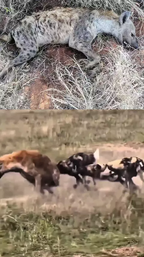cães selvagem vs hienas, hienas atacando, hienas caçando #hienas #flypシ