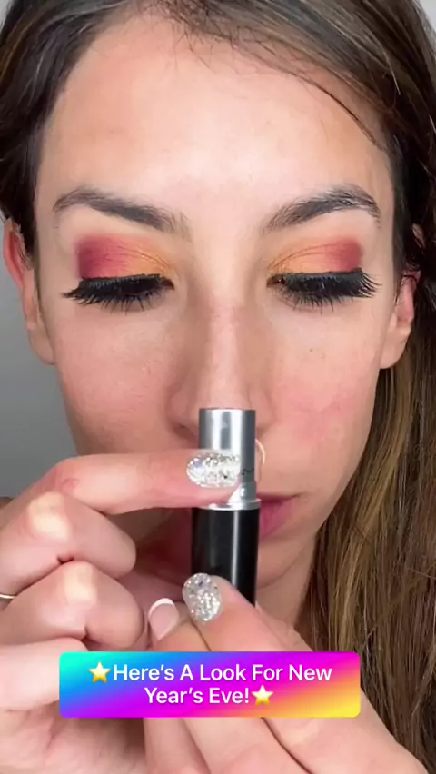 This New Year’s Eve look is simple - black lipstick and a little sparkle goes a long way! #makeup #newyearseve #fashion #martinesmakeup #howto