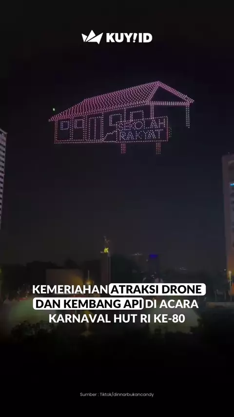 Yang semalem gak liat atraksi drone di acara karnaval HUT RI 80, nih bisa liat di sini!😍 Via: dinnarbukancandy #kuyid