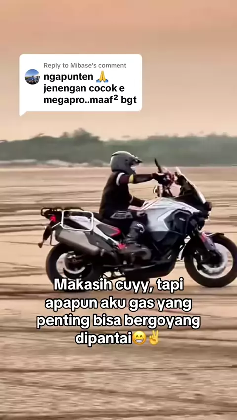 Replying to @Mibase makasih sarannya masee, akusih motor apapun gas terussss, yg penting motorannya bukan motornya😜🙏✌️ .#crocodileholepeople#semuahanyatitipan#ktm#ktm1290#izinistri#jokesbapackbapack#pantai#motoran#sanmori#rideonthebeach#powerslide