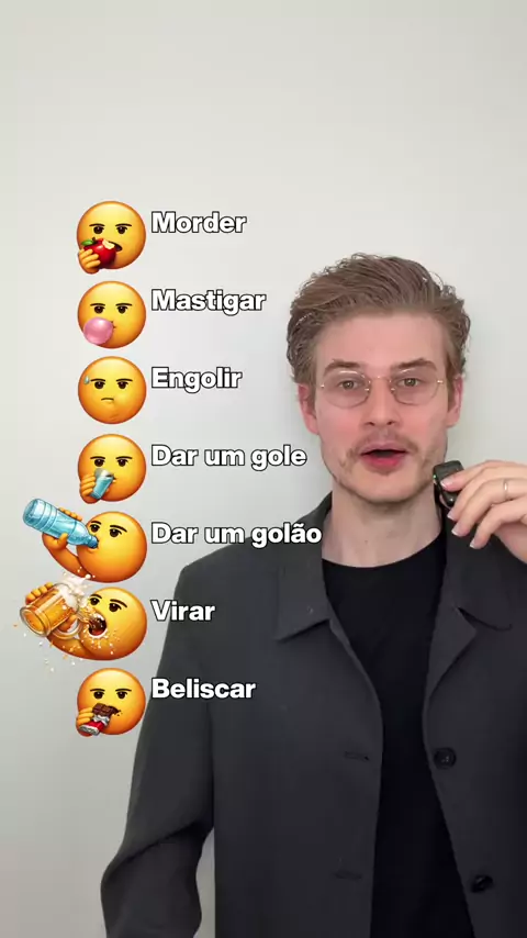 Em inglês: morder, mastigar, engolir, dar um gole, dar um golão, virar, beliscar