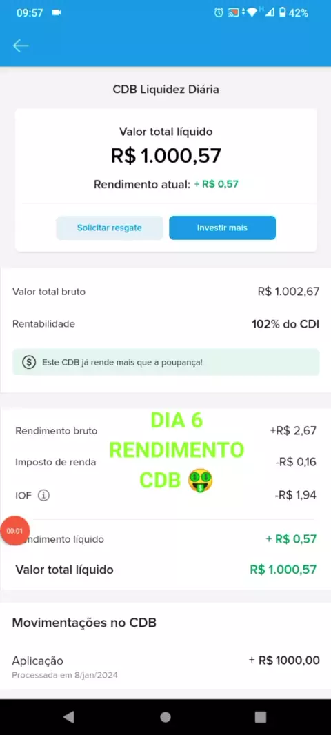 6° DIA DE RENDIMENTO CDB 🍀