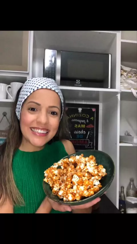 Receita de pipoca 🍿 caramelizada com paçoca 😋 Segue a quantidade que usei nessa receita 🥣 - 100g de milho de pipoca - 100g de açúcar refinado - 10g de manteiga - 5g de bicarbonato de sódio - Paçoca a gosto #receita #receitasfaceis #pipocagourmet #pipoca