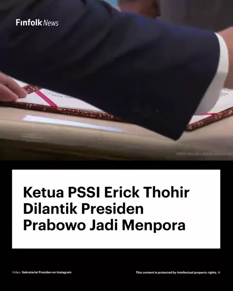 Presiden Prabowo Subianto resmi melantik Erick Thohir sebagai Menteri Pemuda dan Olahraga (Menpora) di Istana Negara, Rabu (17/9/2025). Erick menggantikan Dito Ariotedjo yang dicopot pada 8 September lalu, membuat kursi Menpora sempat kosong selama sepekan. Pelantikan ini ditegaskan lewat Keppres Nomor 96P Tahun 2025. Dalam sumpah jabatannya, Erick berkomitmen setia pada UUD 1945 dan menjalankan tugas dengan penuh tanggung jawab. Upacara pelantikan ditutup dengan penandatanganan berita acara,...