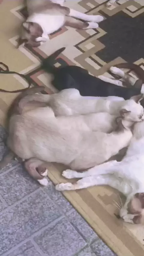gatinha achando que é filhote mamando na mãe #SonecaAnimal #filhotes #gatinhosfofos