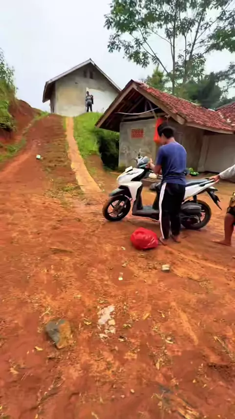 Perjuangan yang ekstra , untuk menaikan motor ketika hujan kayak gini # #vlogs #Vlog #dailyvlog #licin