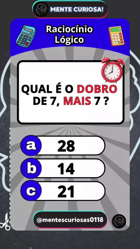 Raciocínio Lógico #quiz #quiztime #quizmatematico #matemática #raciociniologico