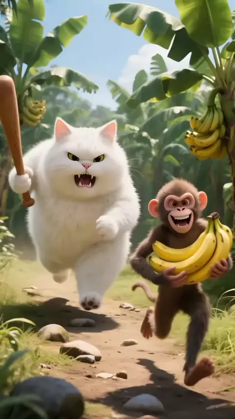Monyet itu sudah mencuri pisang dikebunku ๐Ÿ”ฅ #cat #fatwhitecat #funny #cartoon #