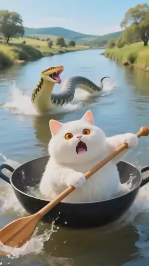 Hampir saja aku mati dimakan monster ular #cat #snake #ular #dikejarular #piton #cute #funny #kucingputih #