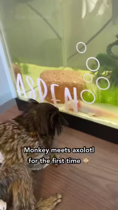 Que animais de estimação você tem? Um dos nossos clientes enviou-nos um vídeo do seu macaco a conhecer o seu novo axolotl! # axolotlplanet # axolotl # axolotls # axolotlsof # fishtok # fishtank # aquarium # Fishkeeping # fish # amphibian # salamander # freshwaterfish