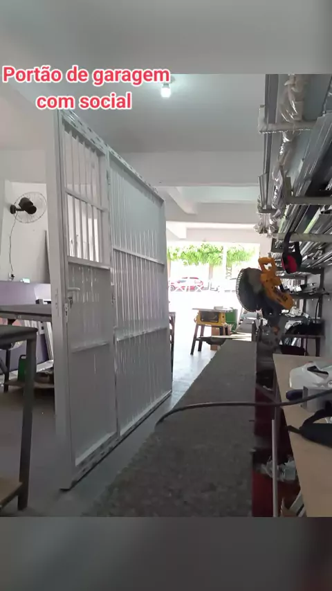 Portão de garagem com social dentro, com Janelinha #AluminioProfissional #Kwai #Viral