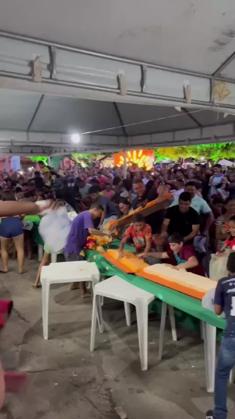 🎂 Fica, vai ter bolo! Durante a festa de aniversário de 38 anos da emancipação política da cidade de #Icapuí, no litoral cearense, moradores "lutaram" por um pedaço de #bolo e o registro da confusão viralizou nas redes sociais. No vídeo que circula na web é possível ver o público atacando o bolo. No meio do #tumulto, no entanto, boa parte da guloseima foi parar no chão. #KwaiNotícias