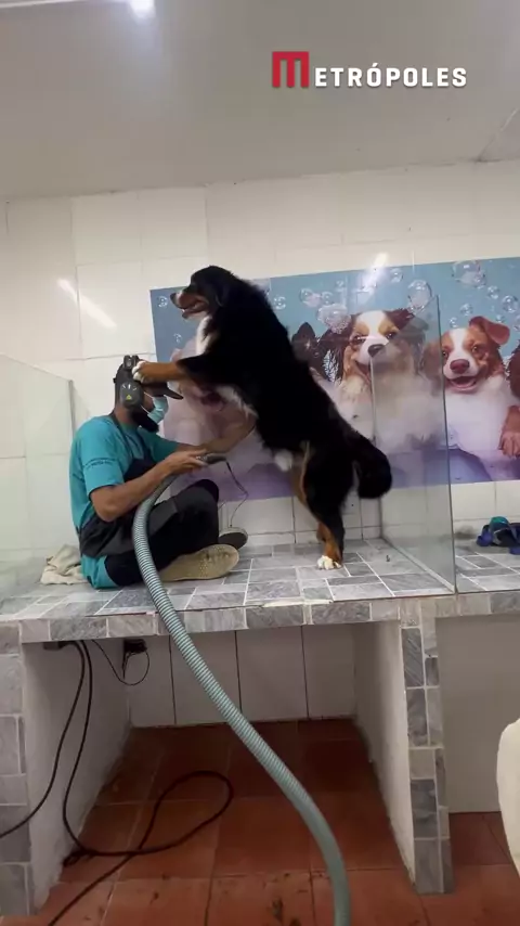 🐶😂 Kleber Batista registrou um momento para lá de curioso protagonizado pelo grande "aumigo" Athos. O rapaz cuida do #SãoBernardo desde que ele era filhotinho e a convivência criou um laço de confiança entre os dois. Athos adquiriu um hábito curioso durante o banho e, na secagem, o #doguinho apoia estrategicamente as patas da frente na cabeça de Kleber, abrindo caminho para que o rapaz seque a barriguinha com todo o cuidado. #KwaiNotícias 🤳 groomerpet.kleber (ig) | dommedia.br