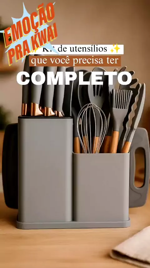 Kit Completo Jogo Utensílios de Cozinha Luxo 19 Peças Com Tábua em Silicone Espátula Faca Tesoura #KwaiChef2025 #viral #maisviews