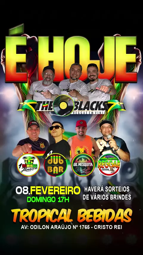 🇯🇲 VIBRAÇÕES POSITIVAS 🇯🇲 CHEGOU O GRANDE DIA 🙏🏻 É HOJE É HOJE É HOJE 💚💛❤️ 🇯🇲🎵🇯🇲 ❤️💛💚 REGGAE NA VEIA 1° EDIÇÃO 2026 🗓️ DOMINGO 08 FEVEREIRO 17hs 📍 No TROPICAL BEBIDAS 🇯🇲🍀 Av : Odilon Araújo - 1765 - Cristo Rei